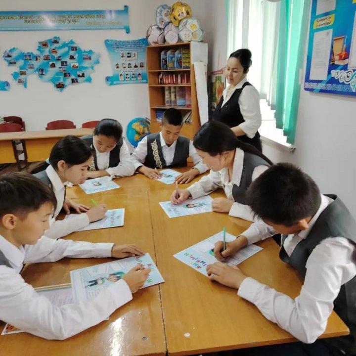 Төребай Ақбозов атындағы орта мектебінің 8 а сынып оқушыларының сынып жетекшісі Құдайбергенова Қаракөз "Білімім- Отаныма" тақырыбында тәрбие сағаты өткізілді. Тәрбие сағатында әнұран орындалды және білім министрлігінің құттықтауы бейне ролигі көрсетілді.